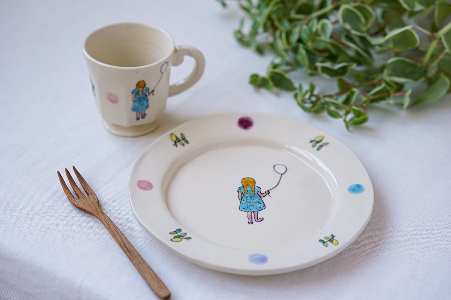 6寸皿 女の子と風船 / 長浜由起子