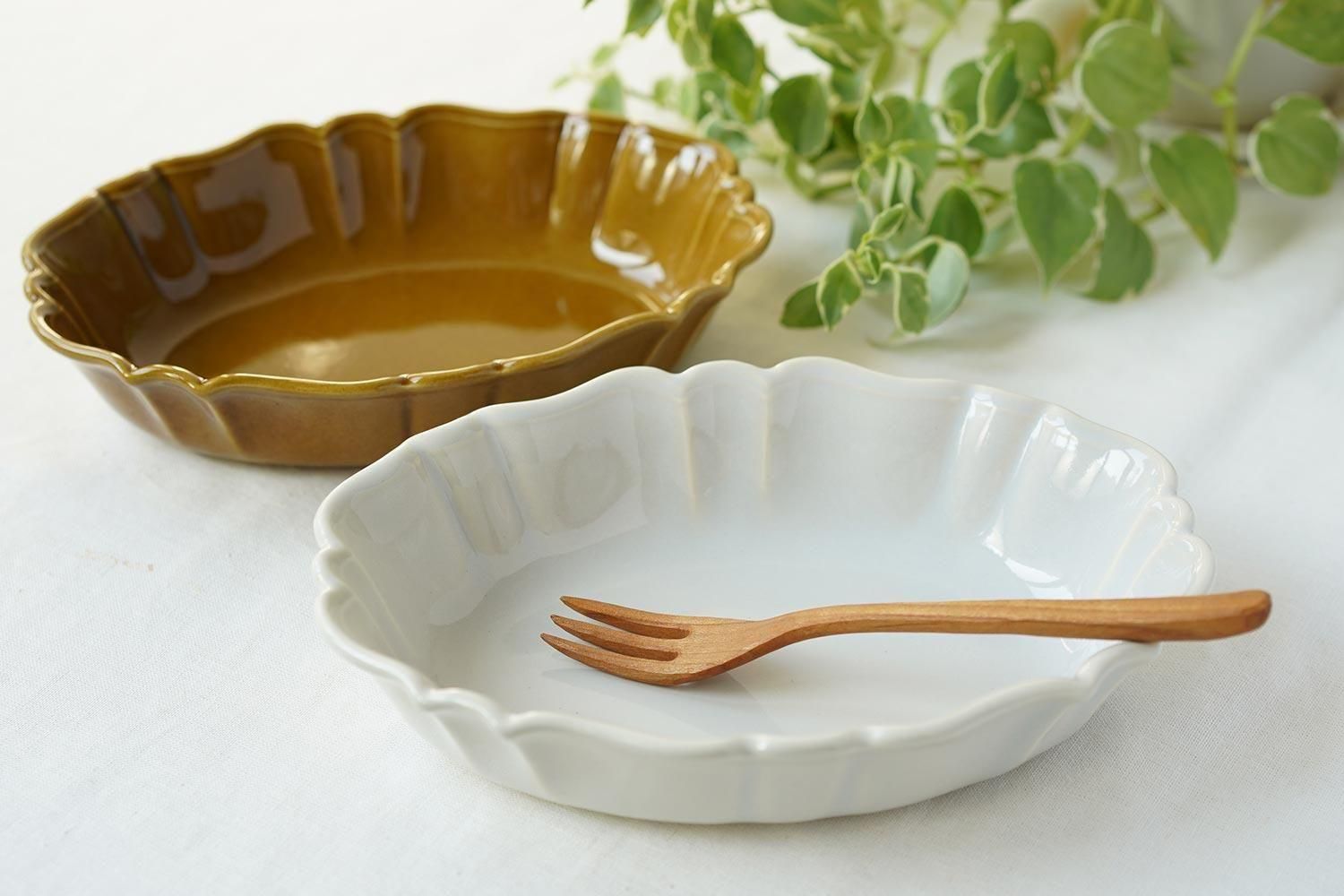 7寸リム輪花皿 墨入貫入 / はなクラフト