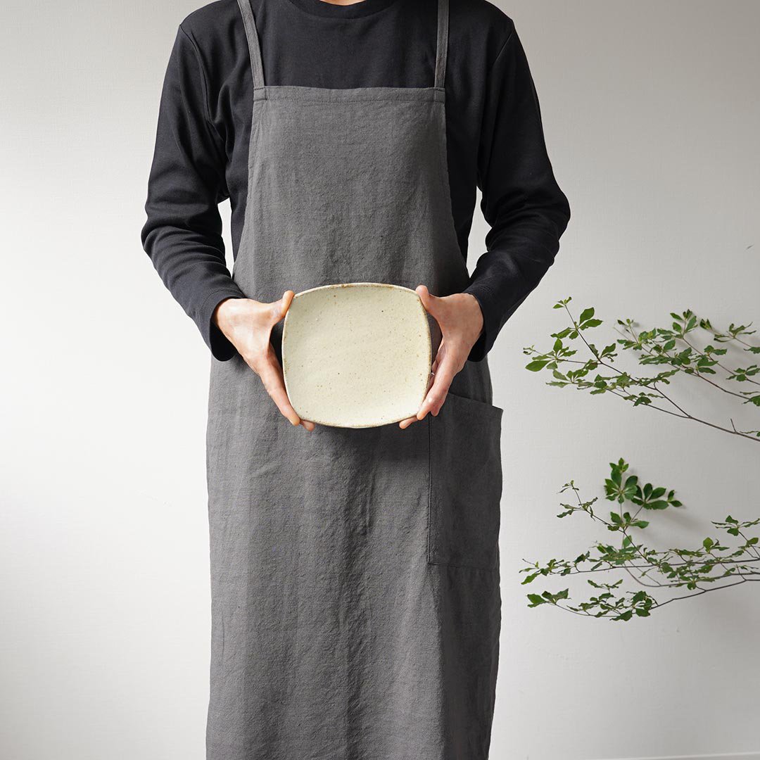 益子で作陶されている佐藤敬さんの黄粉引の四角皿。対角の長さが19cmの中くらいの大きさのお皿。