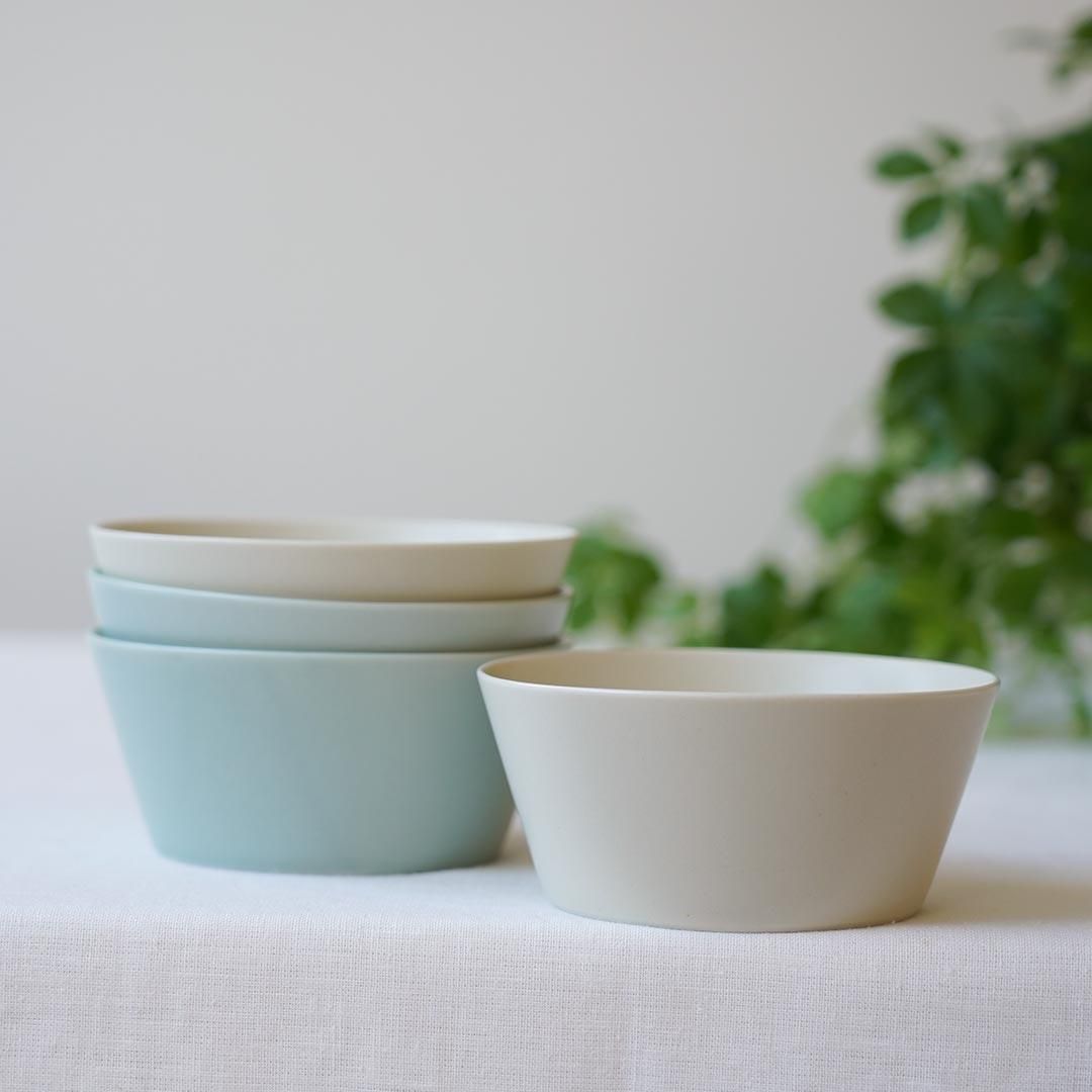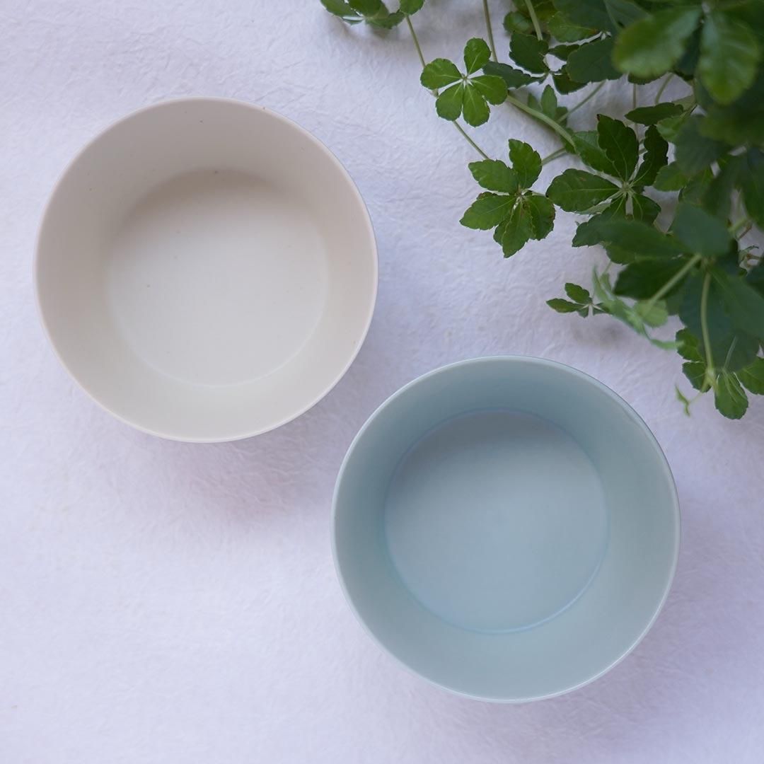 KANEAKI SAKAI POTTERYさんのボウルのカラーは、写真右の「ペールブルー」と、写真左の「アイボリー」の2色です。