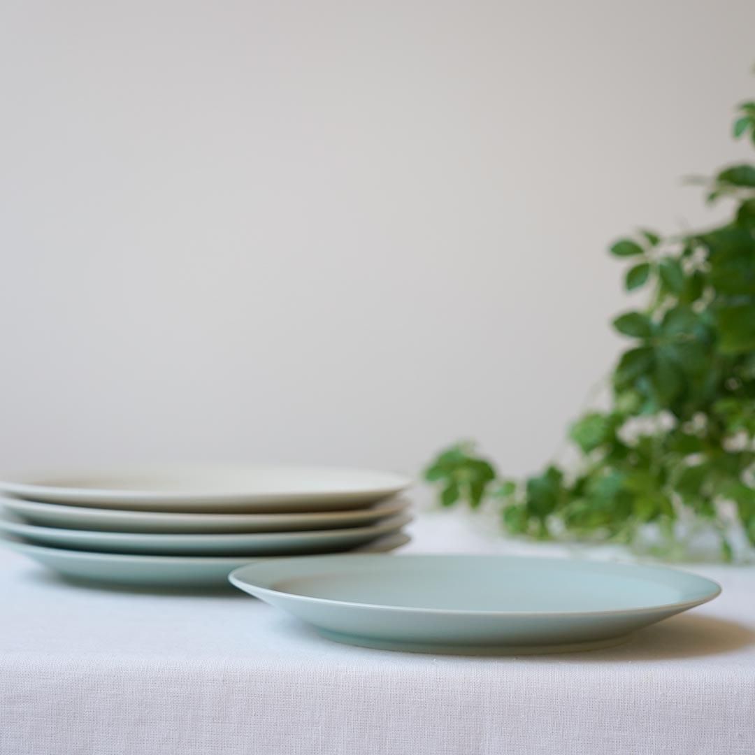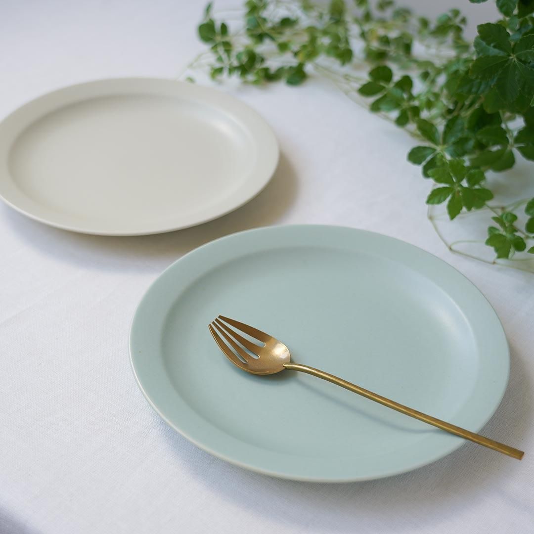 KANEAKI SAKAI POTTERYさんのプレートのカラーは、写真右の「ペールブルー」と、写真左の「アイボリー」の2色です。