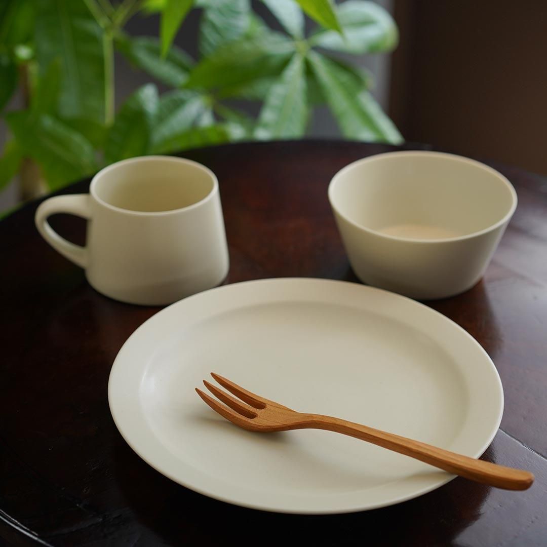 真っ白ではなく、生成り色よりの柔らかな白で、お料理に合わせやすく、暮らしに馴染む色です。