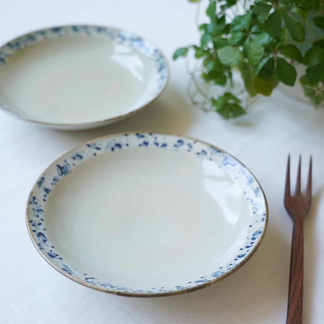 兵庫県丹波篠山で作陶されている石井桃子さんの約18cmのリム皿 花唐草。メイン料理や、ワンプレートにもお使いいただけます。