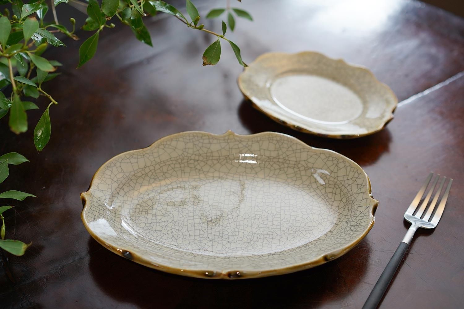 ・うつわは全て手作りのため、ひとつひとつ大きさ、形、色、模様、風合いなどが異なります。歪みや、ヒビ、ピンホール、釉薬のムラなどある場合もあります。