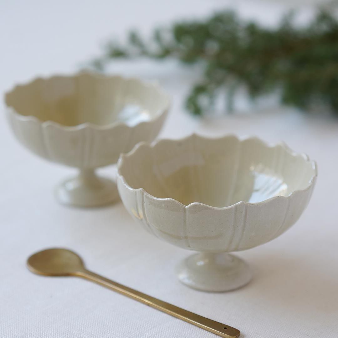 田中大喜さんの美しい形と柔らかな色合いの六弁文高足鉢。