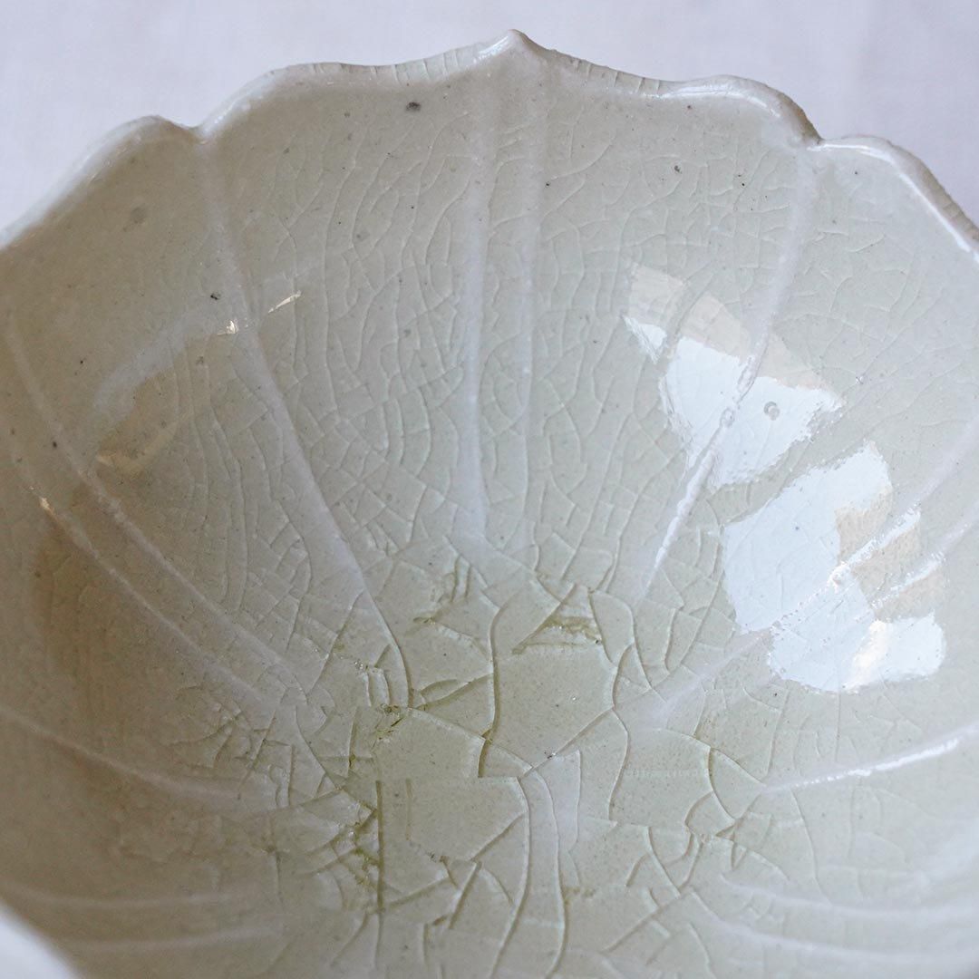 貫入(釉薬の部分にできるひび模様)の入った透明感のある灰釉が掛けられた器です。