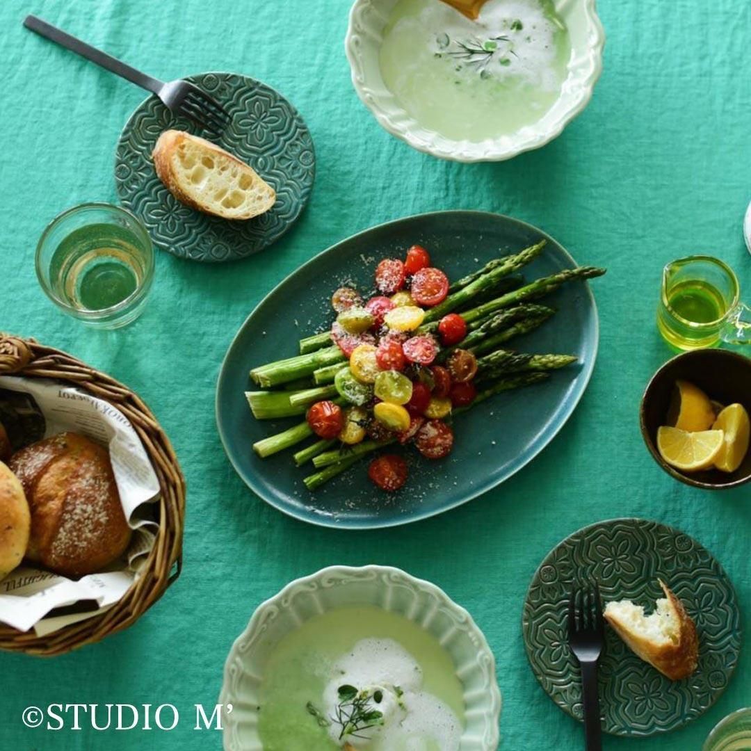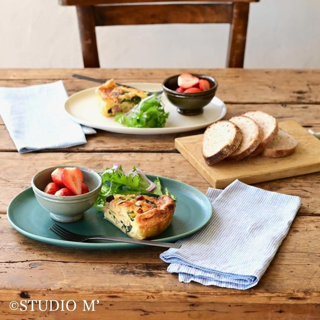 マルミツポテリさんのフラットな面の広い楕円のお皿。セミマットな質感と色が綺麗な釉薬が特徴のオーバルプレートです。