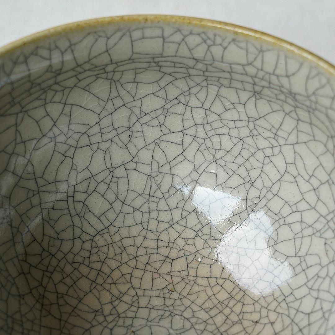 地は淡いグレーで、細かな貫入に墨を入れその美しさを際立たせています。落ち着いたツヤがあり、手触りもよいです。