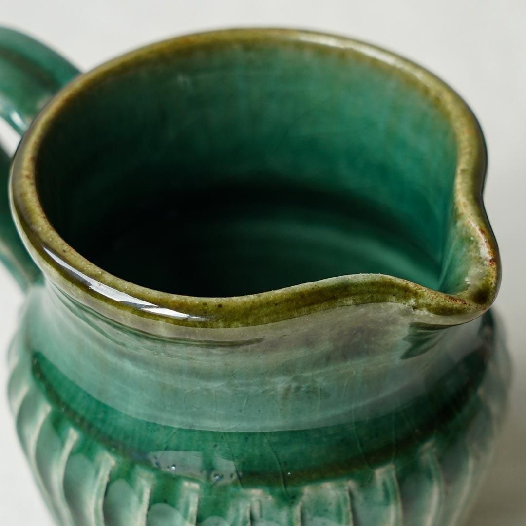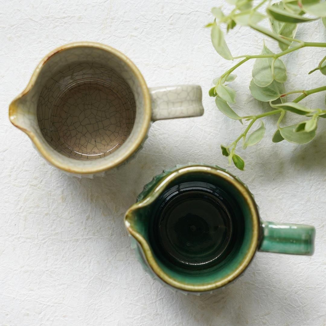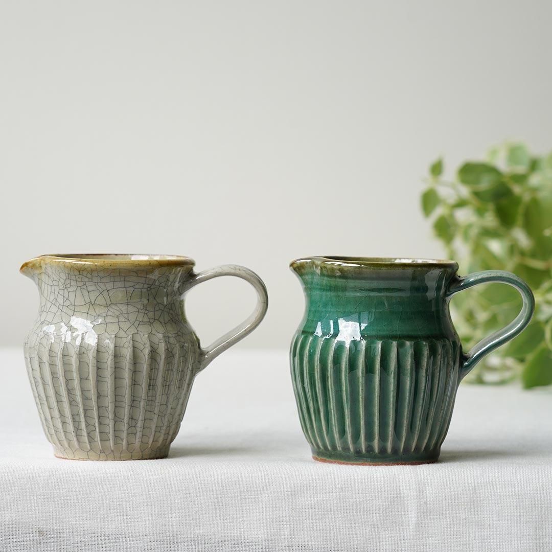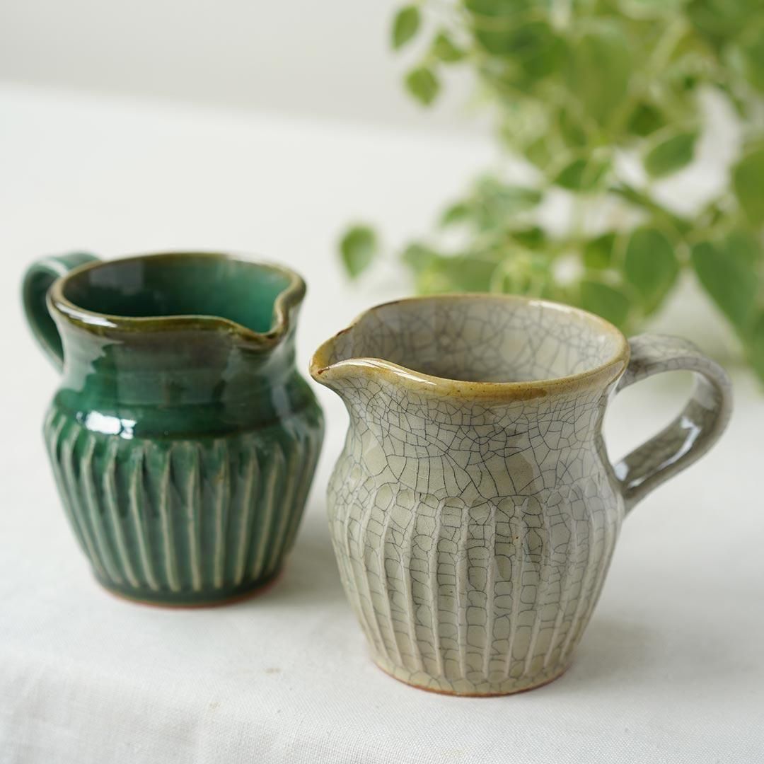 はなクラフトさんのピッチャーSは、写真左:墨入貫入、写真右:緑釉の2種類です。