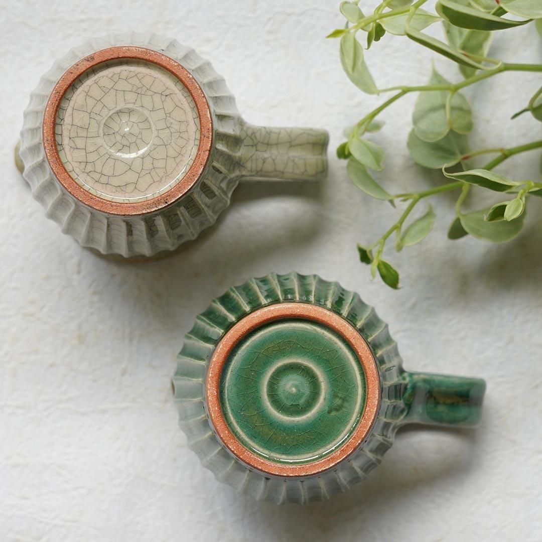 ※ひとつひとつ手作業で作られているため、同じ作家の同じ器でも、大きさ、色、形が異なり、個体差があります。また、焼き上がりごとに、色味や貫入の入り方が一つ一つ異なります。表面に小さな凹みや欠け、釉だまりや濃淡などが見られる場合もあります。風合いや個性としてお楽しみいただければと思います。