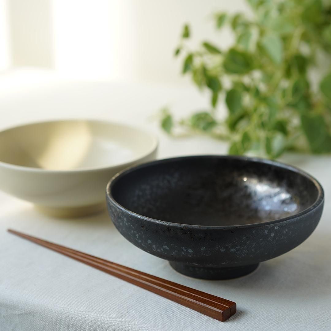 口径が広く浅い形状はバリエーションに富んだ麺料理のトッピングを盛り付けやすく、見た目にもよく映えます。