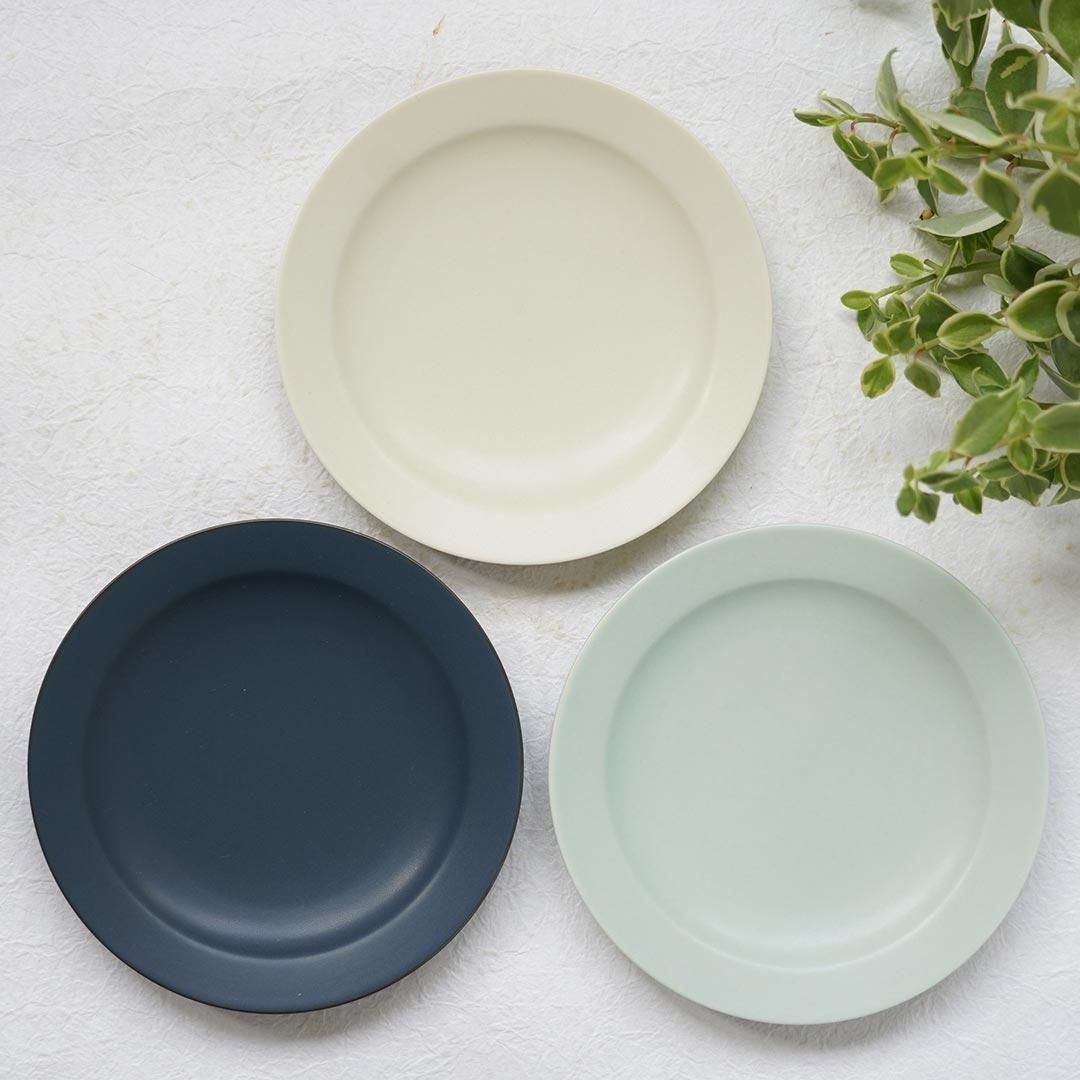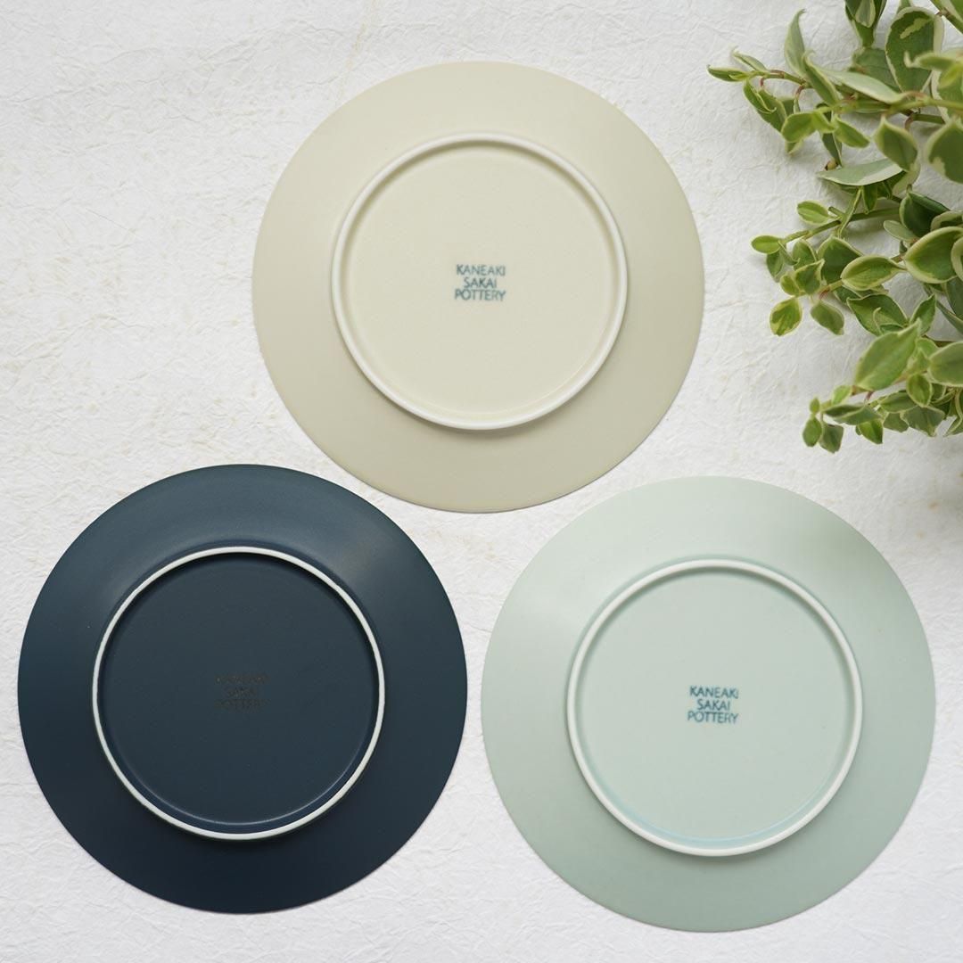 KANEAKI SAKAI POTTERYさんのプレートのカラーは、写真上の「アイボリー」と、写真下右の「ペールブルー」、写真下左の「コバルト」の3色です。