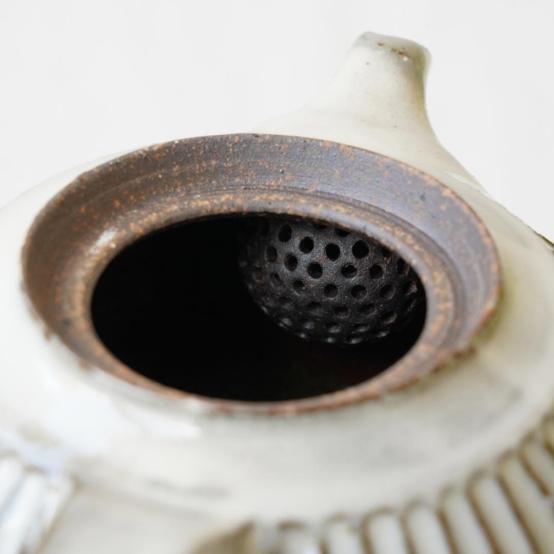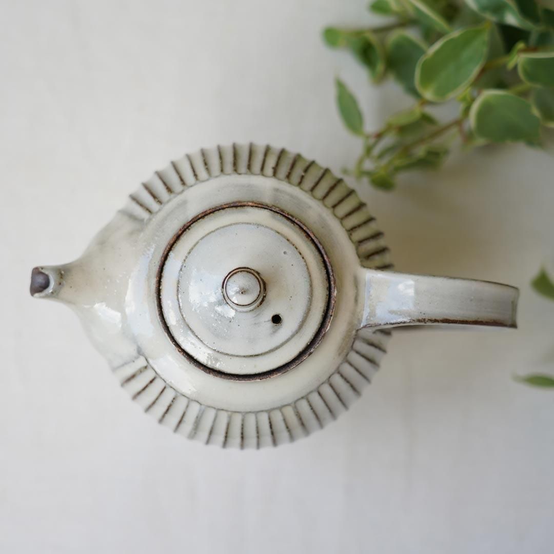 千葉県鴨川市で作陶されている粕谷修朗さんの粉引のしのぎポット。コロンとした丸いポットはどこから見ても美しく、いつものお茶の時間がより一層楽しくなります。