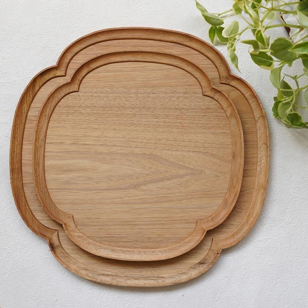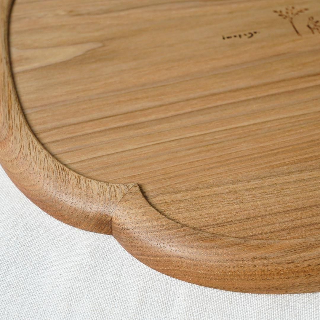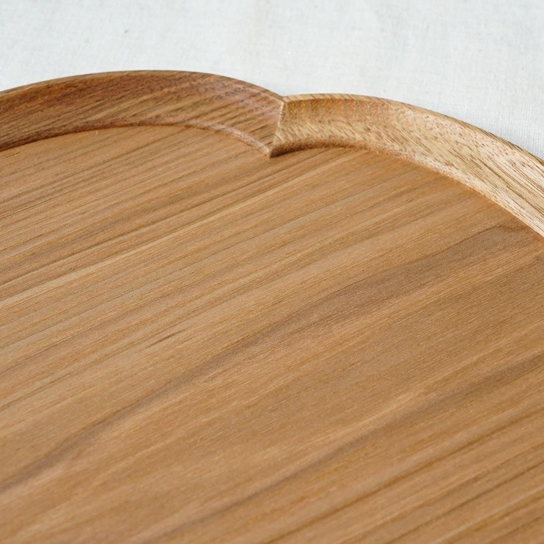 iwakaguの木の美しさを引き出すトレー。こちらは、木瓜型のトレーで、約27.5cmのサイズです。