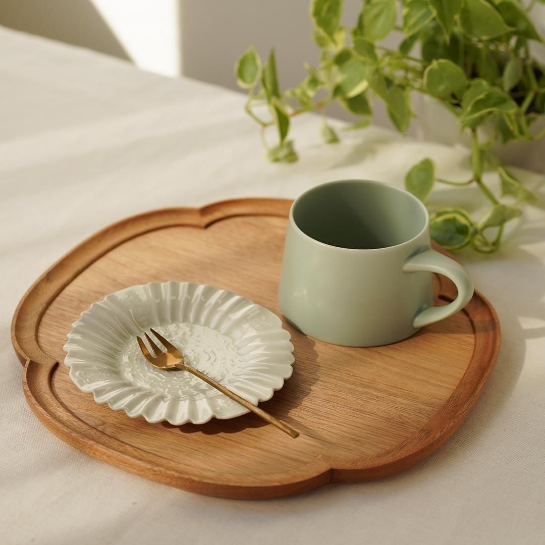 普段使いの器を木のトレーにのせるだけで、ちょっと特別な食卓を演出してくれます。